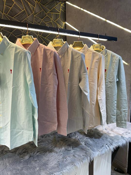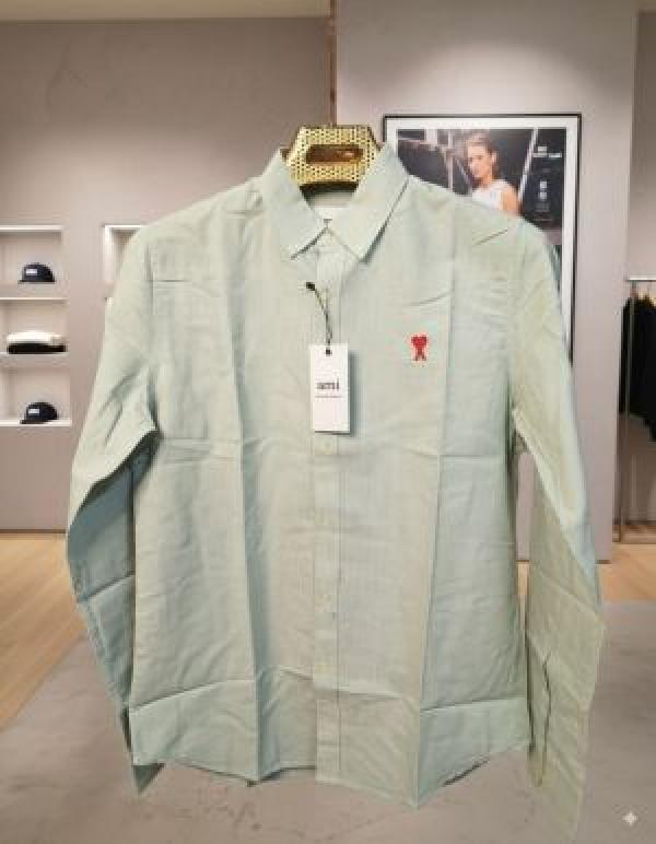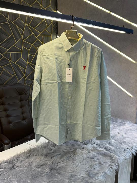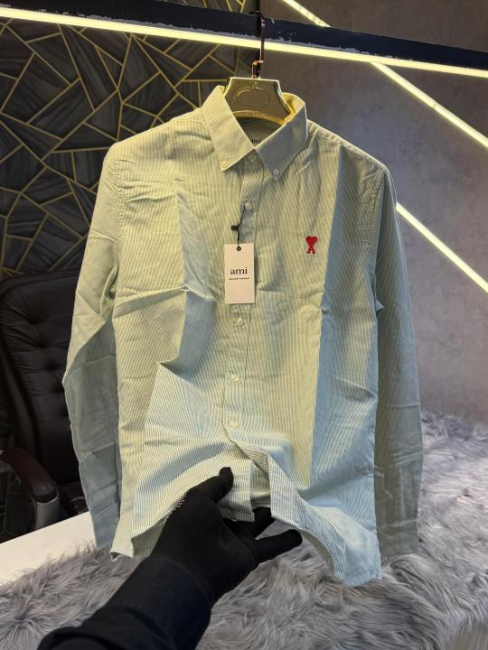 Home Shirts sale_Ami Paris Green Stripes Embroidery Logo Premium Shirt (1850)